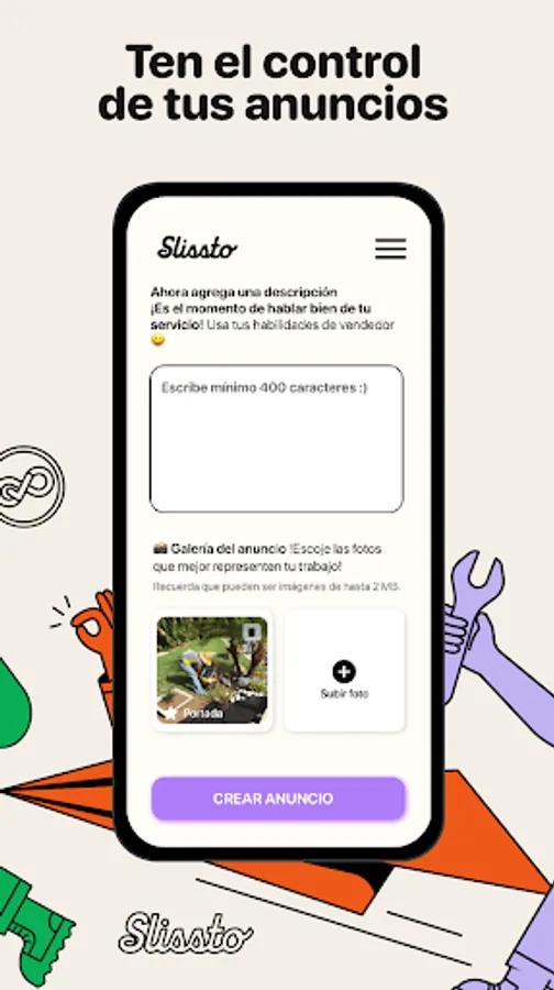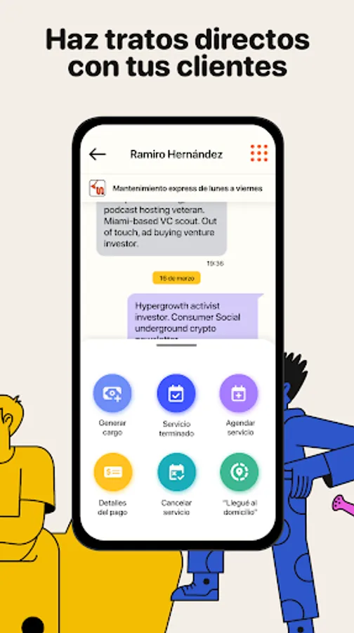 Create personalized publications of your services, quote and make direct deals with your clients through chat and choose which days you will be available to work from the calendar.