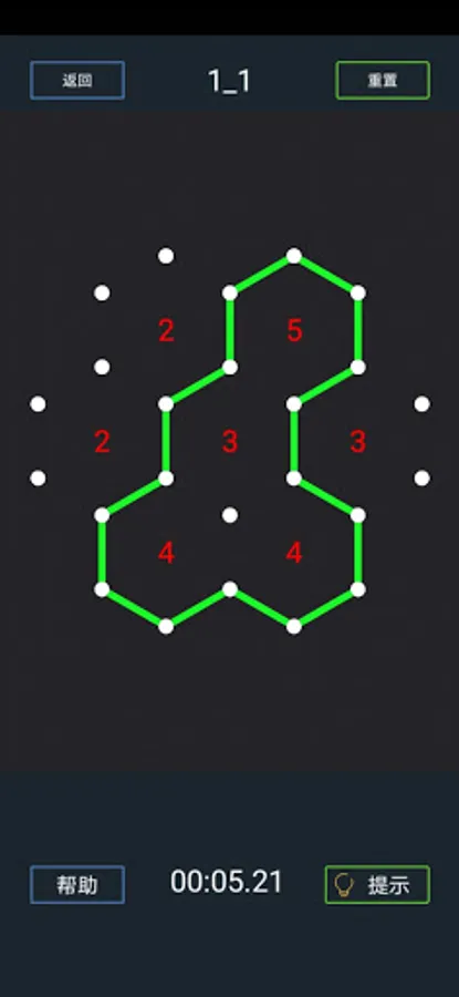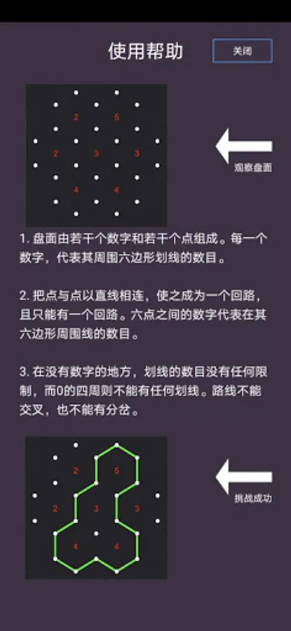 2. Connect the points with a straight line to make it a loop, and there can only be one loop. The number between the six points represents the number of lines around its hexagon.