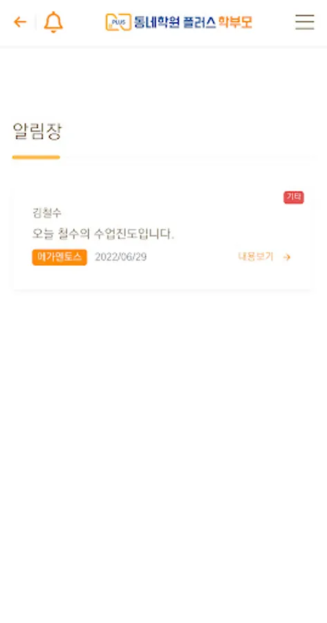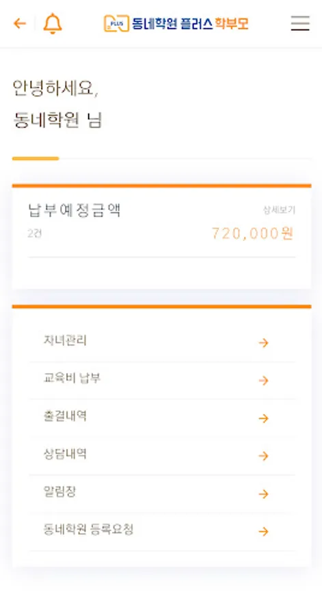 A place for communication with the academy will be provided, such as my child's attendance history, counseling history, and notification box.