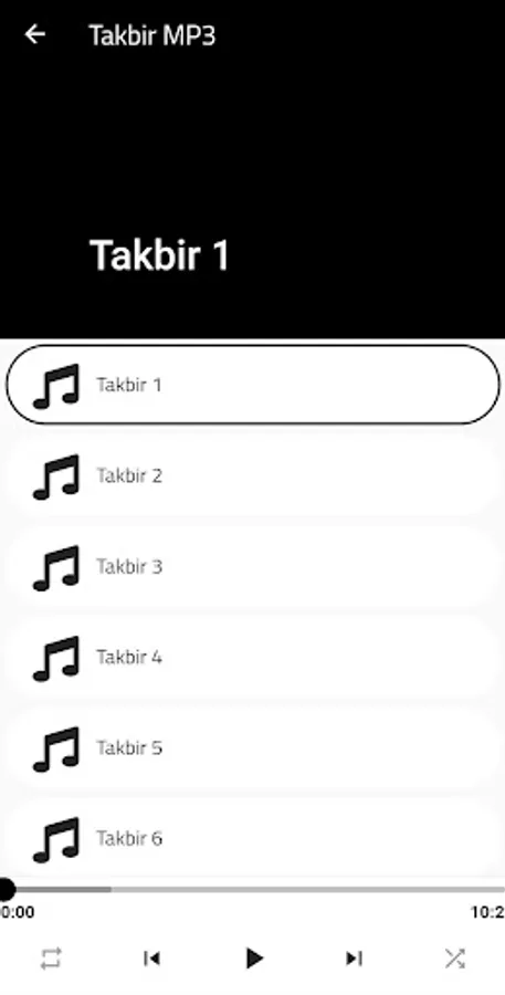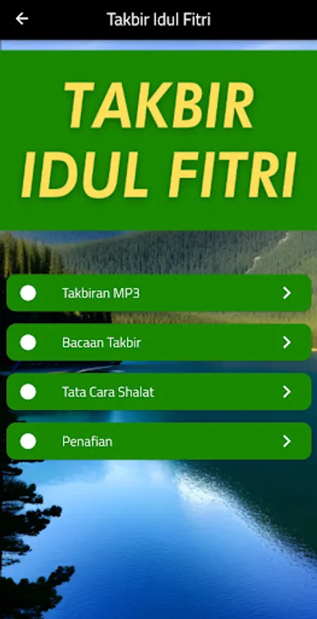 This Eid Al-Fitr Takbir application contains various MP3 takbirans and takbir lafadz to be heard and seen.