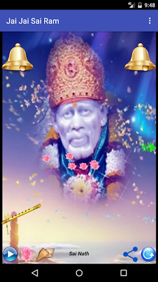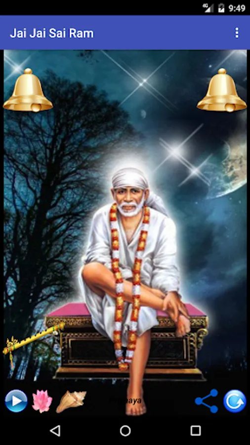 This app contains functionality as offering flowers Shower, Conch Shell and Bell with melody of Jai Jai Sai Ram Japa. User can auto re-play japa via just click on right hand replay button.