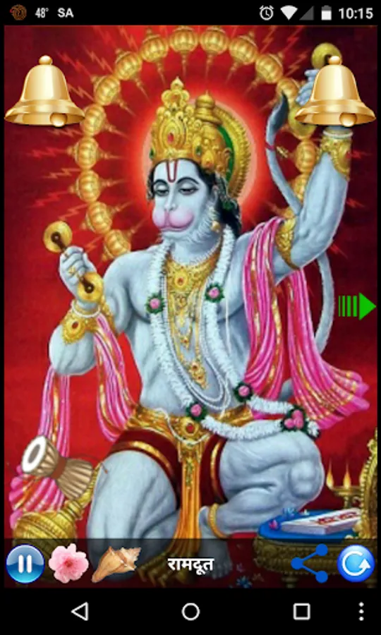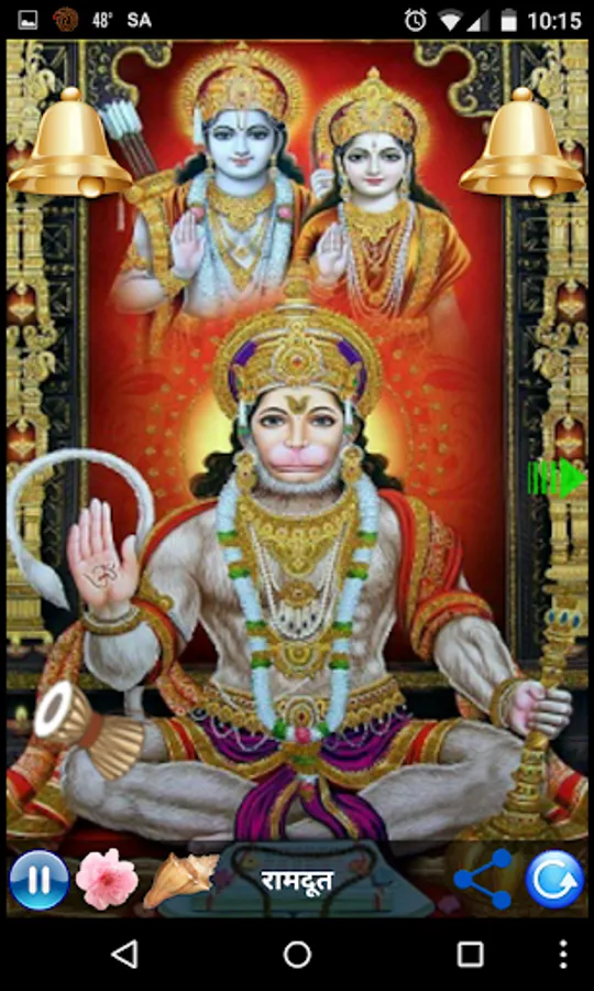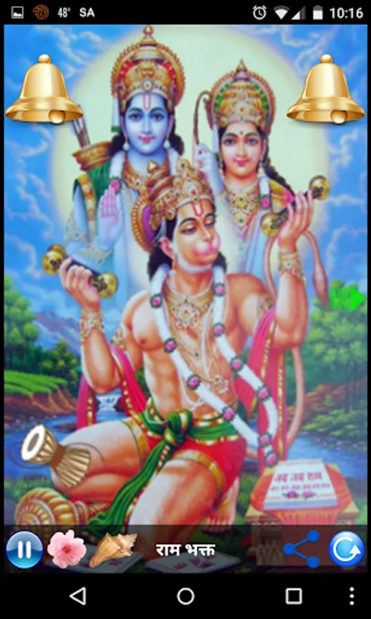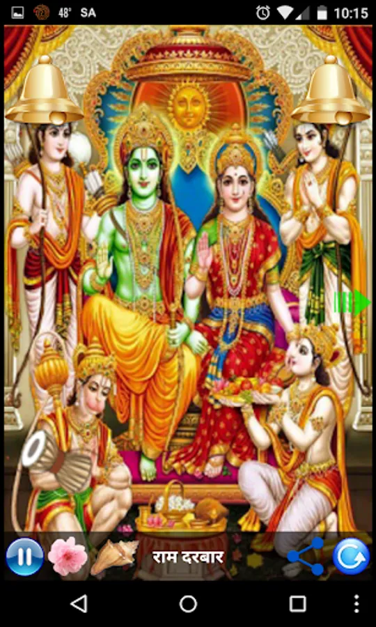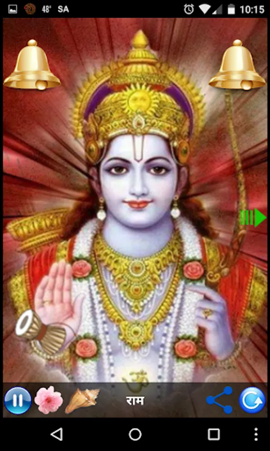 This app contains functionality as offering flowers Shower, Bell and Conch Shell with melody to lord Rama. User can auto re-play via just click on button.