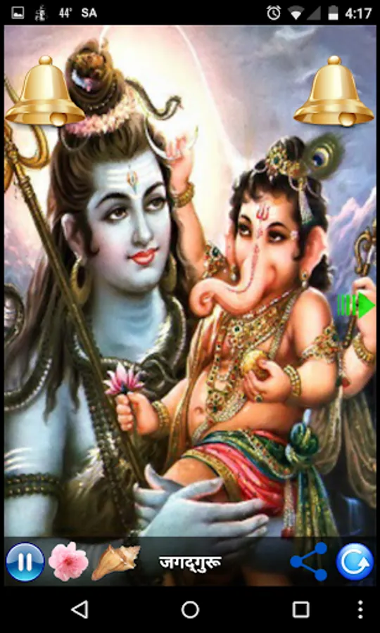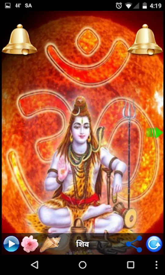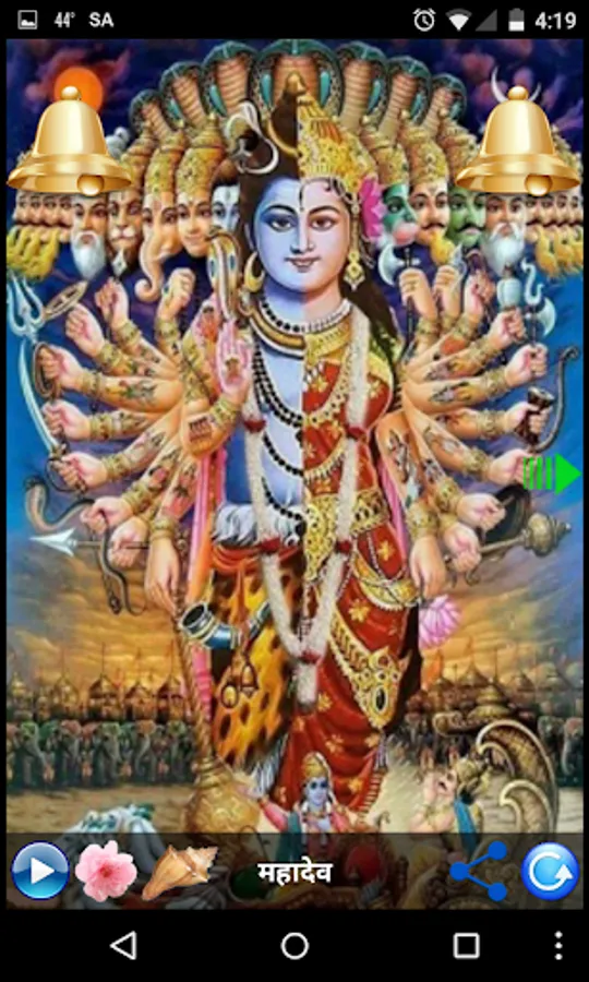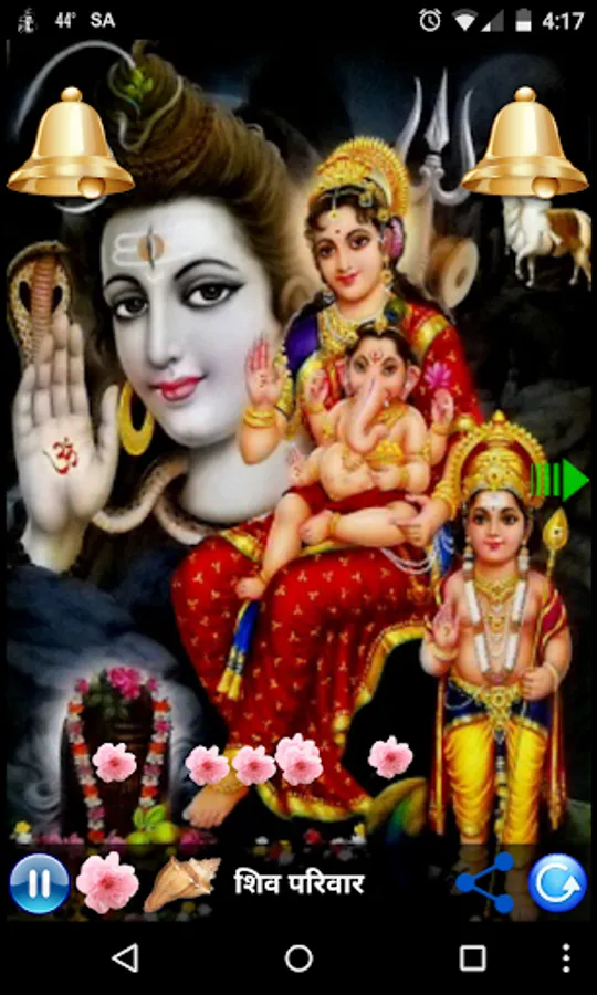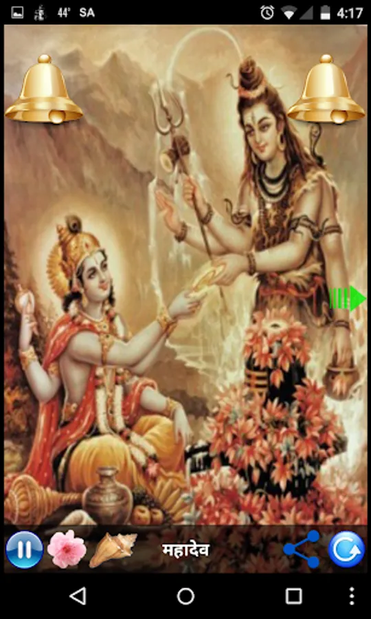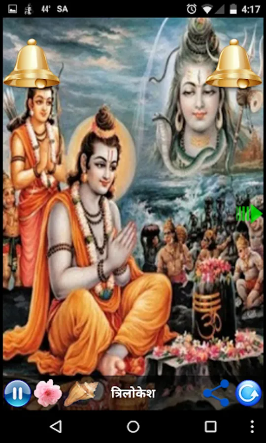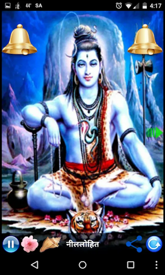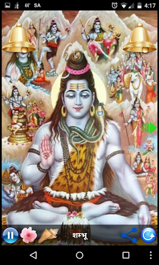 This app contains functionality as offering flowers Shower, Bell and Conch Shell with melody to lord Shiva. User can auto re-play sahasranaam via just click on button.