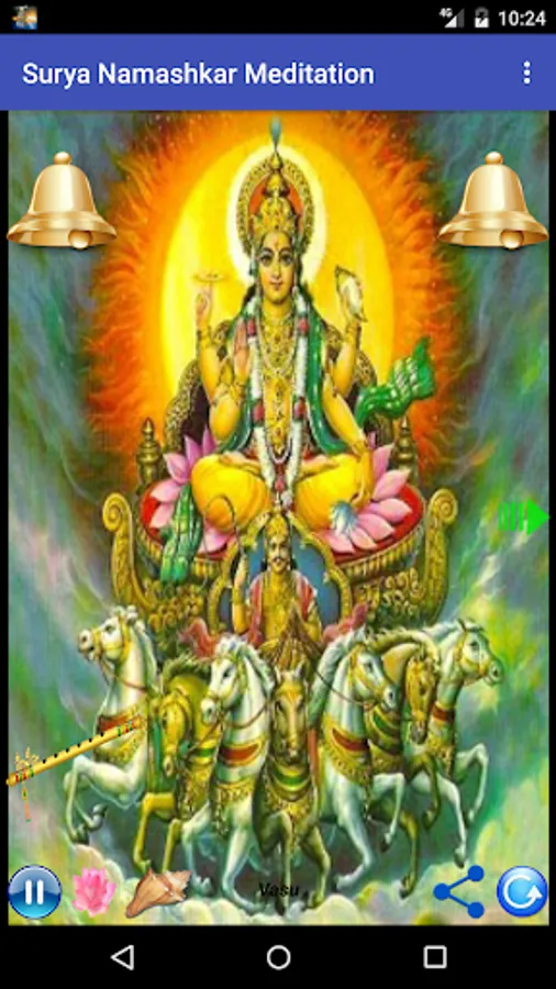 Surya means the Sun. Surya is one of the nine heavenly houses (Navagraha) in the zodiac system of Hindu astrology. Surya or Ravi is the basis of Sunday, as per Hindu calendar. Surya Namaskar is associates with quality of truth, peace, divine love and blissfulness. It encouraged devotees to pray, chant God's name, read holy scriptures and do Meditation.