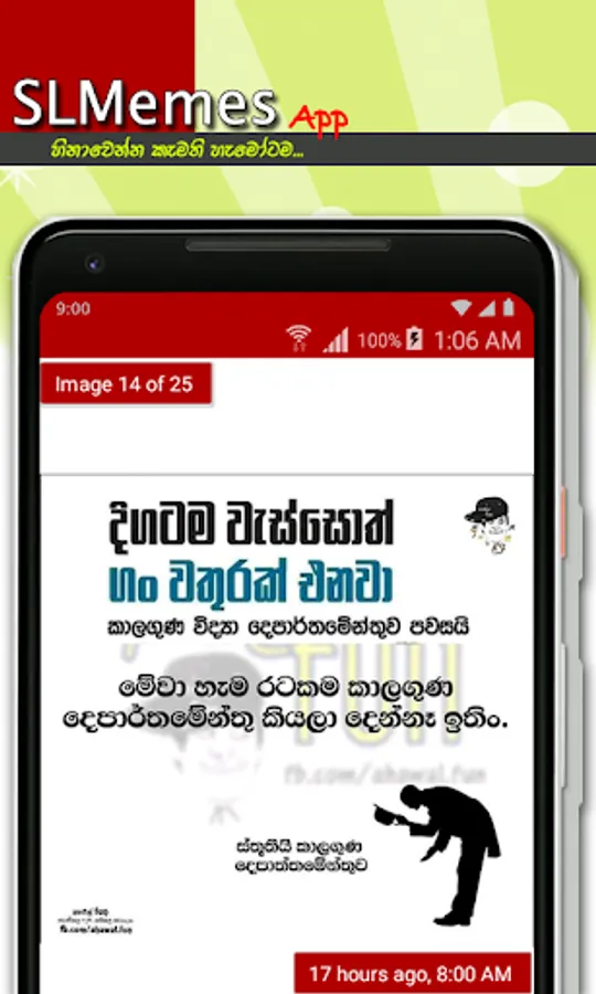 SLMemes App is a FREE mobile App that brings you a great collection of Sri Lankan Memes on a hourly basis. So just download and start enjoying all your favorite Sri Lankan Memes.
