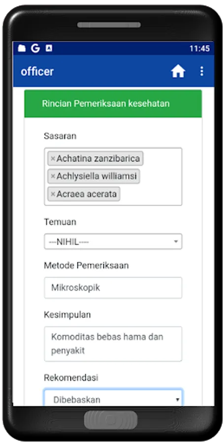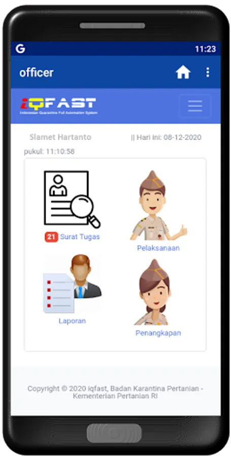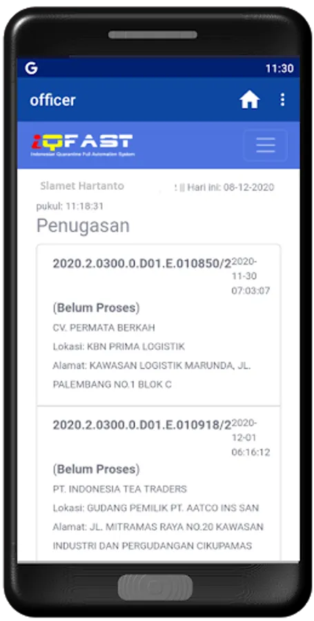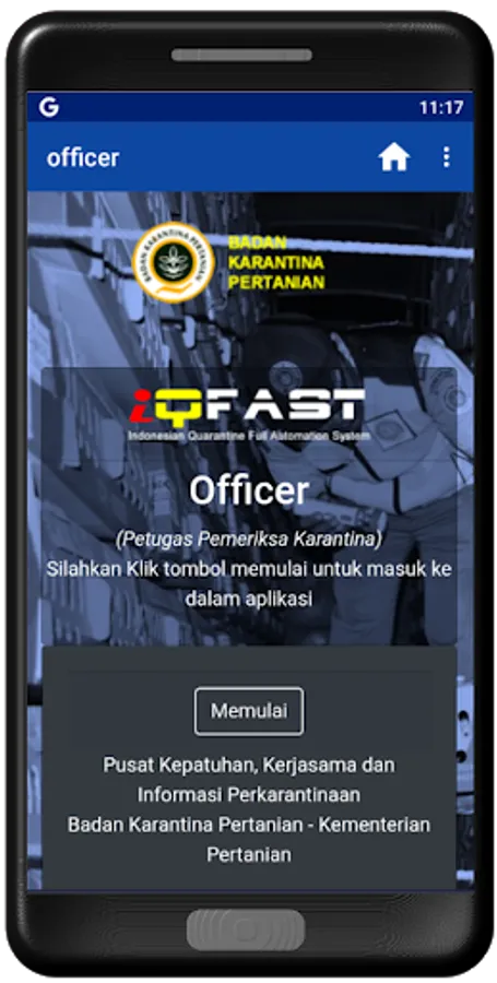 Officer refers to the use of information technology in quarantine operational activities using an intranet and the internet, which has the ability to link field inspection results with the iQFast system inhouse in real time. In essence, this Officer is the use of information technology that can connect field officers and iQFast service officers at the counter to support fast and easy quarantine services.