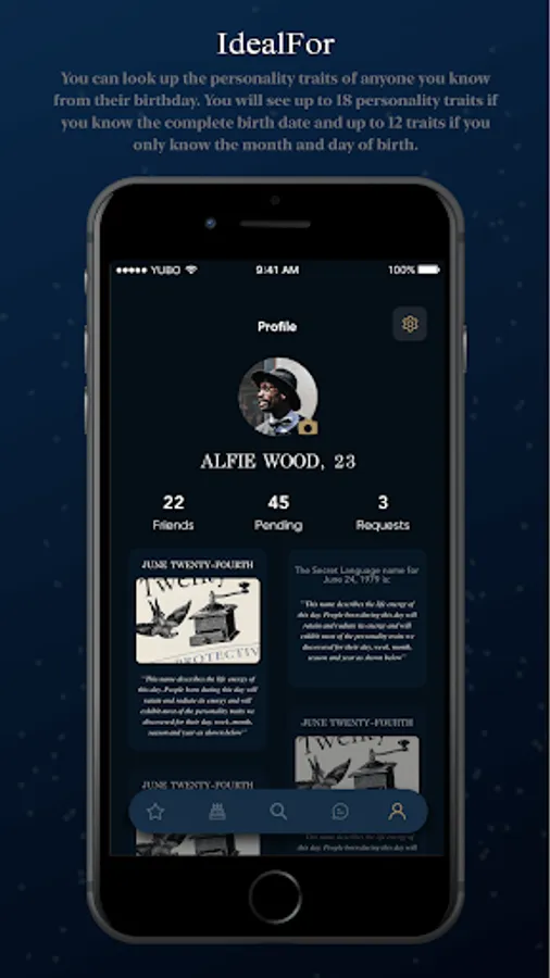 IdealFor, a rebranded app based on the popular Secret Language of Birthdays, is your go-to guide for understanding personalities through a blend of psychology, history, numerology, tarot, and astrology. By simply knowing the dates of birth, gain profound insights about yourself, your friends, family members, and even newly-met acquaintances.