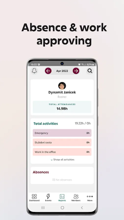 Commenting on attendance events, for example when an employee wants to explain a reason for early leave or late entry.