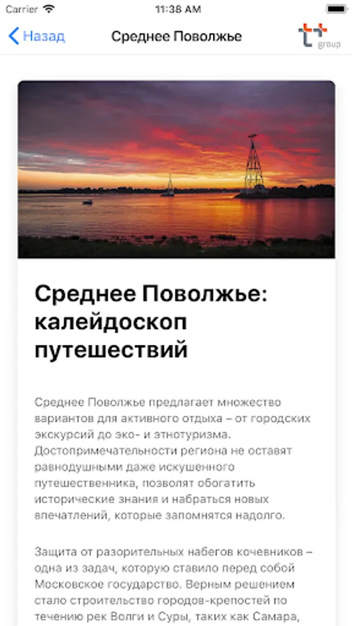 In the application “Volga region. Modern guidebook ”you can find the most interesting facts about the history of cities, cuisine, nations, natural, cultural, industrial and other sights of the Middle and Lower Volga region, useful information about transport, hotels and restaurants. The guide is illustrated with colorful photographs and provided with visual infographics. In addition, those who know them best of all share their impressions of the most interesting objects: employees of T Plus, who live and work in various cities of the Volga region.