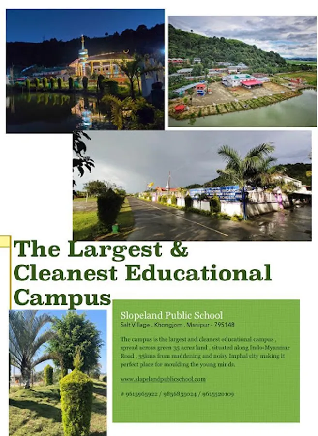 Slopeland Public School is the largest educational campus in Manipur, and one of the largest in North East India, situated at a very pollution free eco friendly place, 35 Kms far from maddening and hectic crowd of Imphal City.
