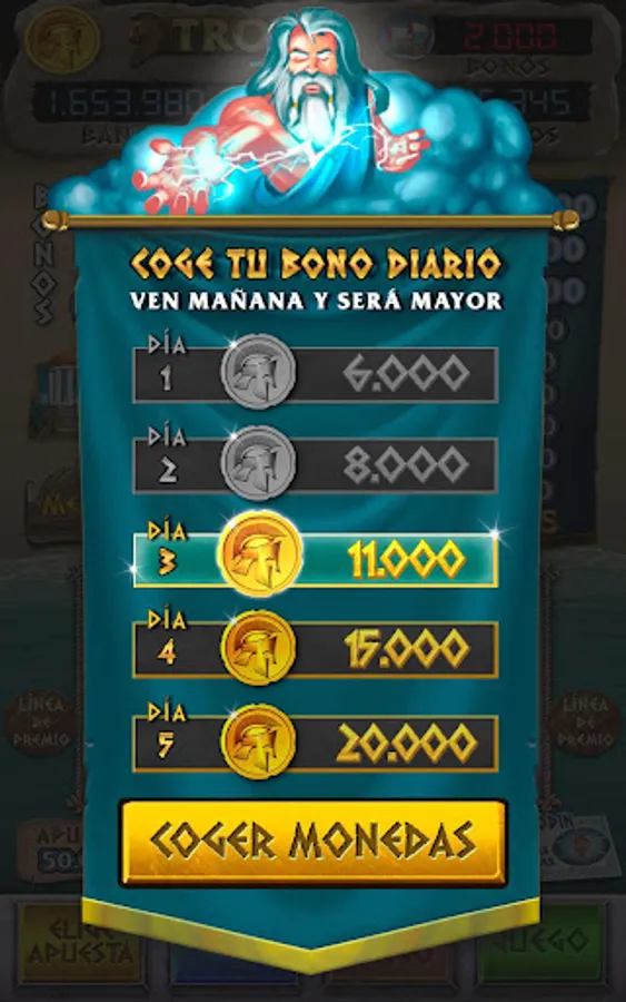 Zeus custody your daily sack of gold daily The more consecutive days you enter the bigger your reward will be!