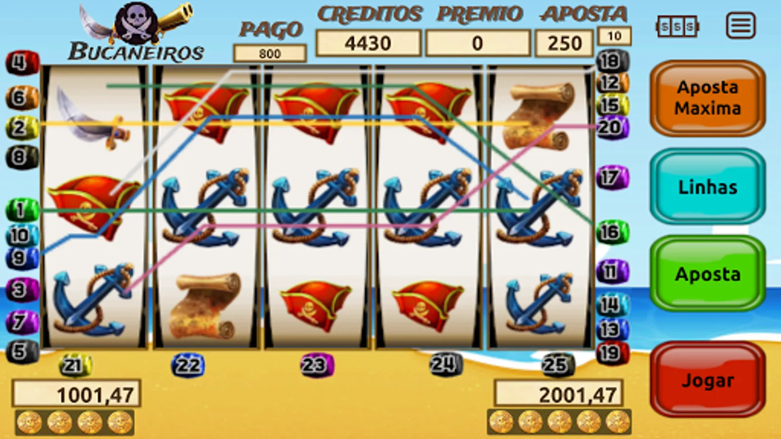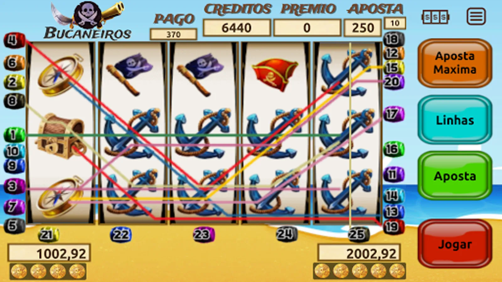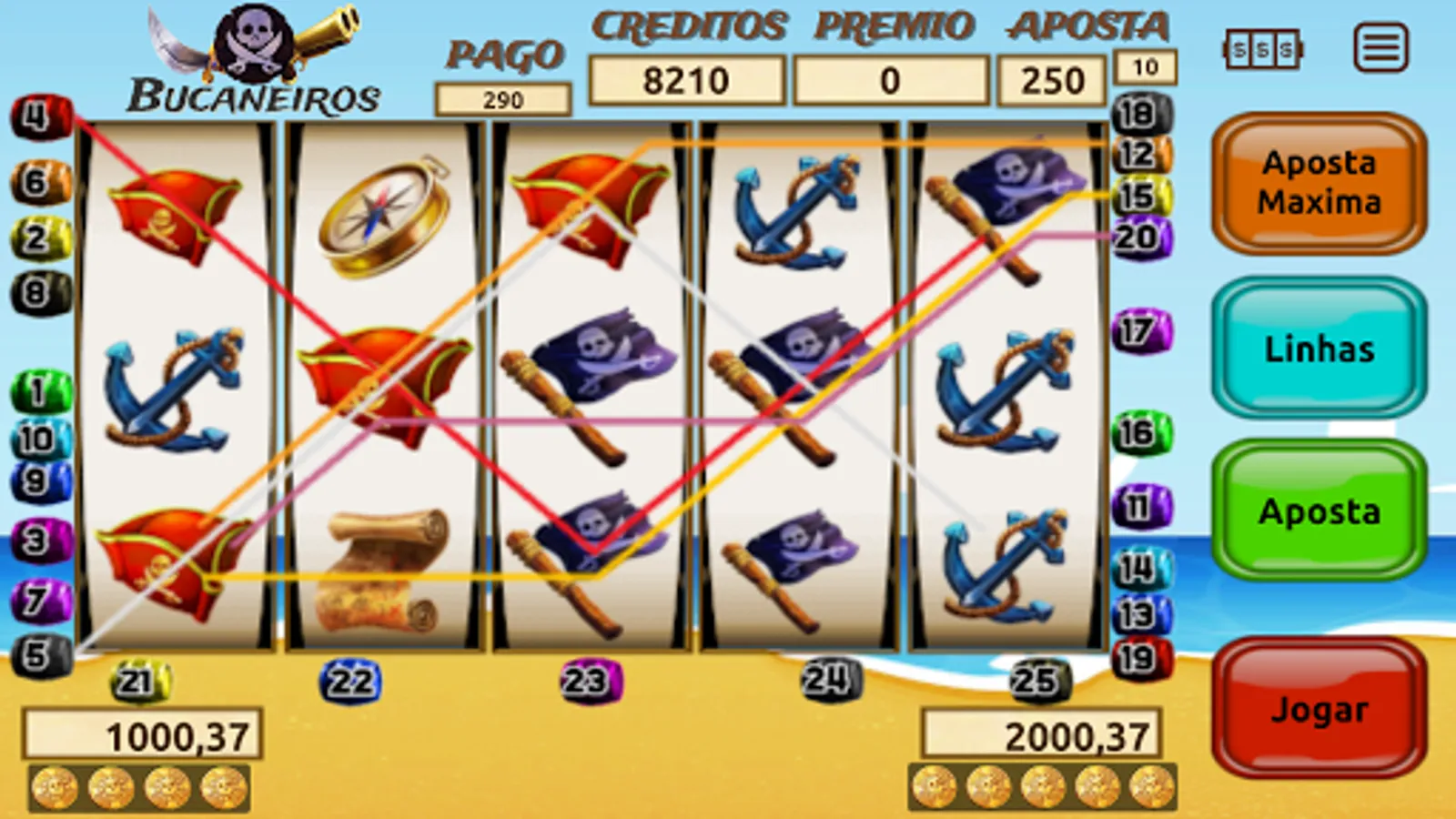 Slot Machine Buccaneers of 25 lines. With jackpots.