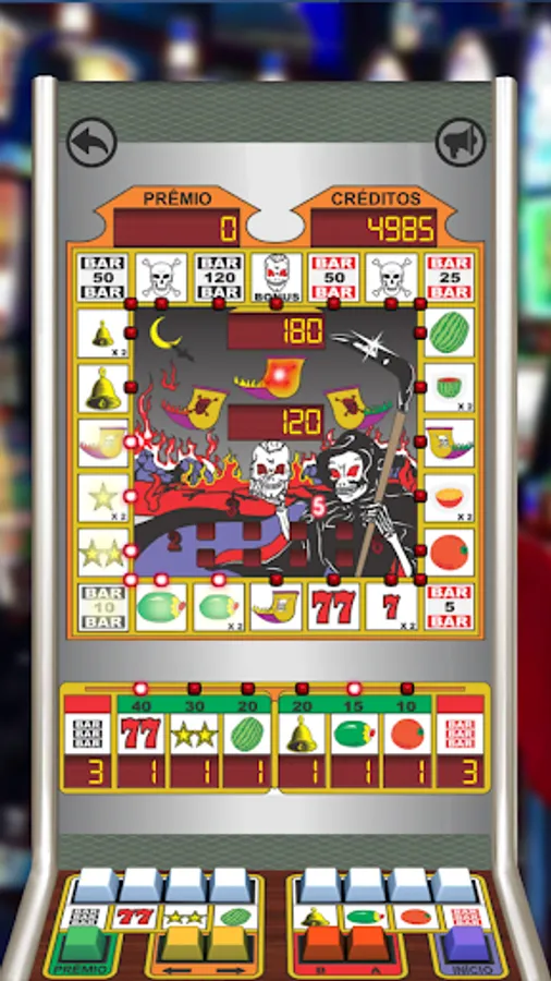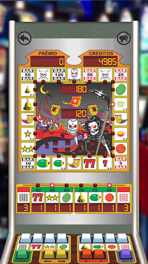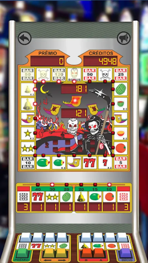 Slot Machine game Hell Fire (aka Caveirinha, aka Caverinha). Bet and earn credits for fun.