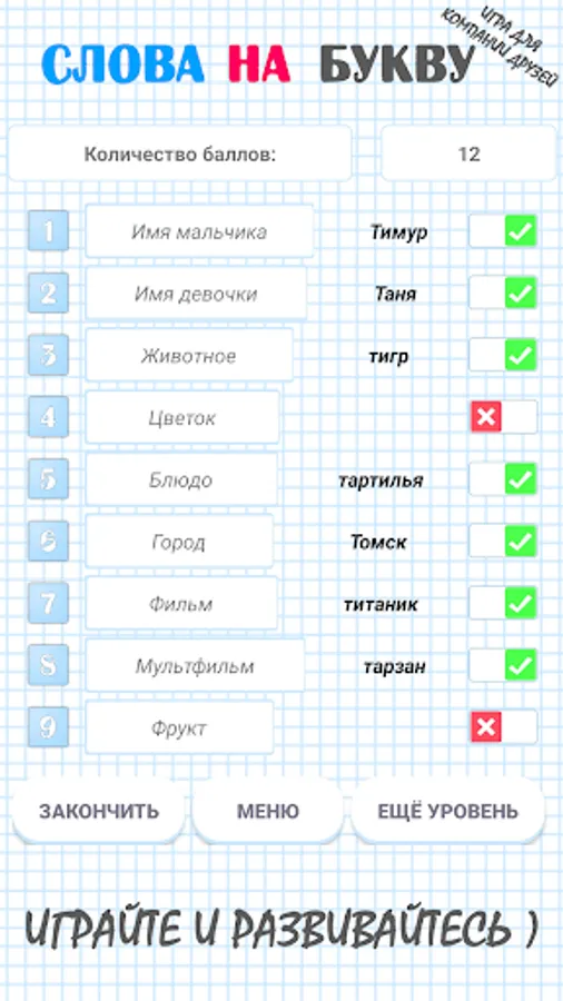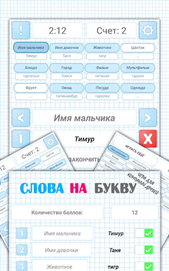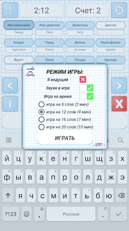 WORDS in LETTER a game familiar from childhood for a group of friends