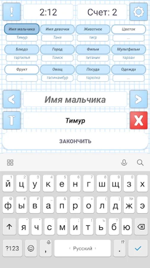 5️⃣ the first one to write all the words clicks finish and informs everyone, the rest of the players at the same time must complete the level 💬