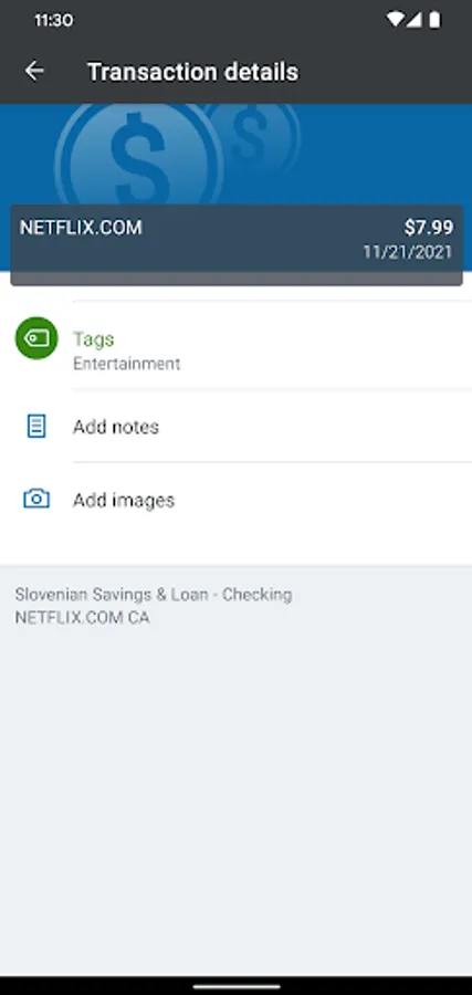 Keep your transactions organized by allowing you to add tags, notes and photos of receipts and checks.