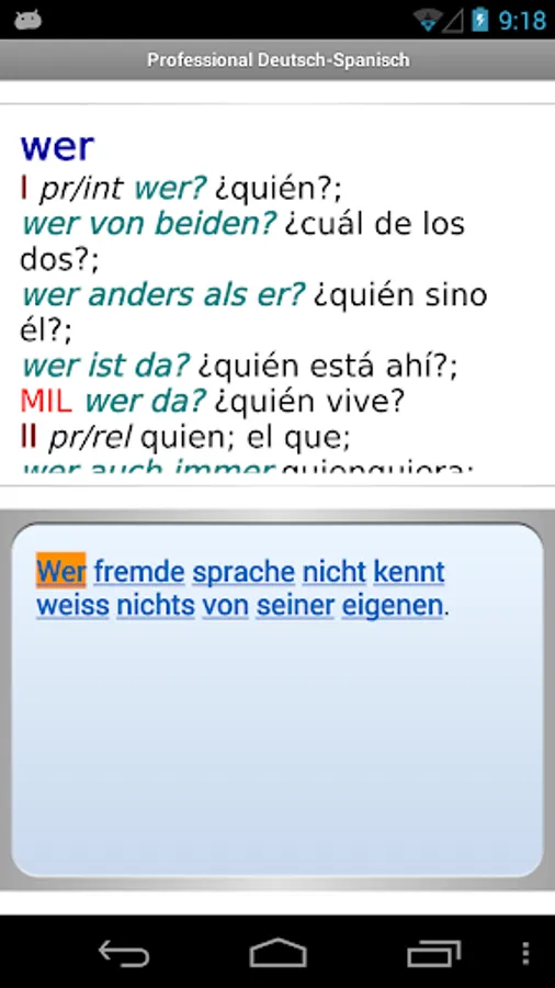 • Enter a query into the input field and Langenscheidt will automatically build a list of entries containing your query, increasing the probability of finding the right definition.