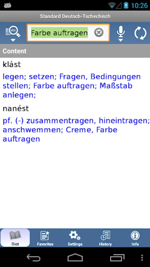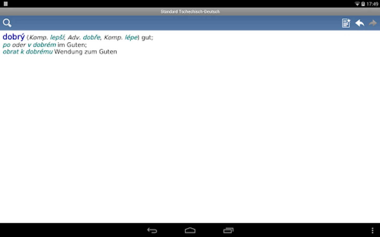 • Additionally, full text search displays search results (dictionary entries) in both language directions at once without the need to switch directions manually.