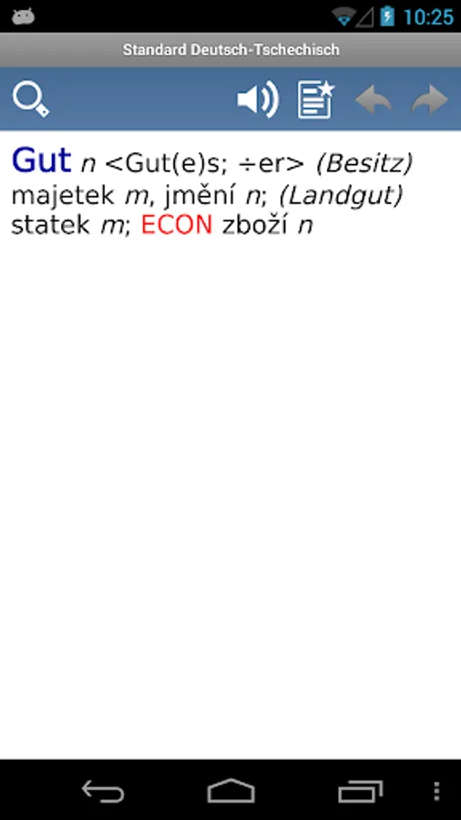 • Translate unknown words or phrases from any application like the web browser or email using the Share button. The feature allows you to send copied text to a dictionary directly and get translation in one click! (Available for OS 4.0 and higher).