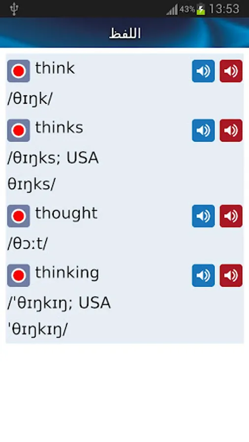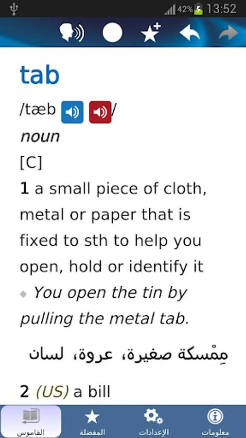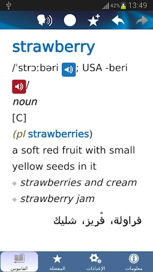 تدرب على اللفظ الصحيح: استمع للفظ الكلمات باللهجتين البريطانية والأمريكية، وسجل اللفظ بصوتك لمقارنته بلفظ القاموس•