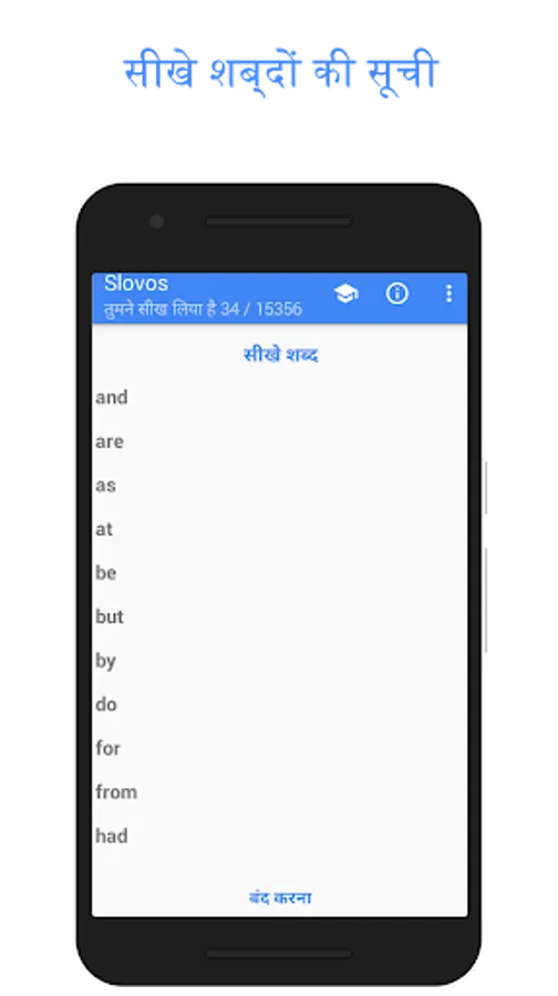 The Slovos app contains 15,000 most popular English words. The list includes all forms of speech, as well as all forms of irregular verbs. In the compilation the core of modern American English was used. Its main difference is that the core has 520 million words and is balanced by style. Sorted terms by popularity Very simple and very popular at the very beginning, which can be found almost everywhere. That is, you will not be offered to teach at the beginning of the application, for example, the word GABEL (tax on salt), and the good (good) word will drop later.