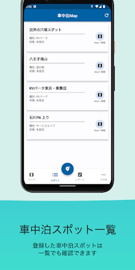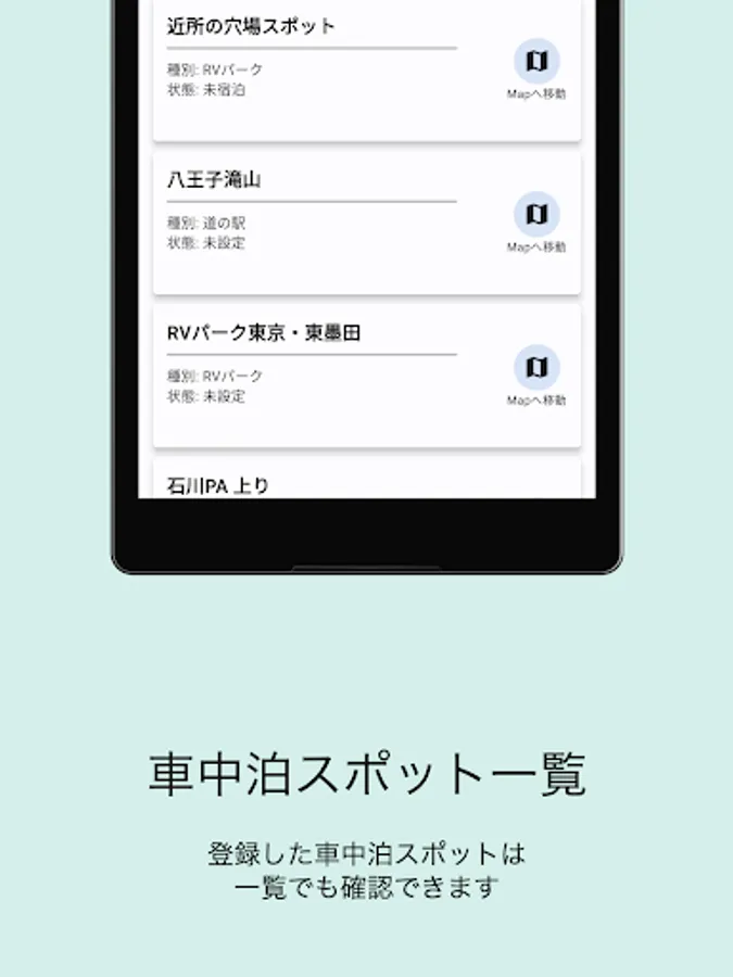 The Car Stay Map app is the perfect tool for travelers and adventurers. With this app, you can save the place where you stayed in the car on the map along with photos and other information. In addition, you can easily register your car overnight spots on the map.