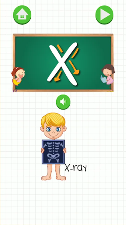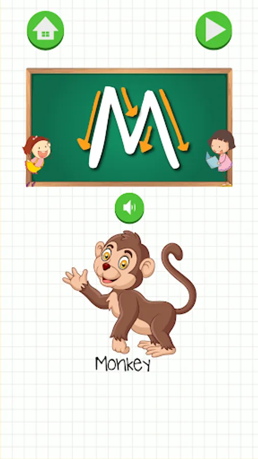 The application of english letter instruction from scratch in voice and image contains examples and exercises to learn English for children easily and many words to teach children the names of fruits, vegetables, animals and other English games for children and English education for young children.