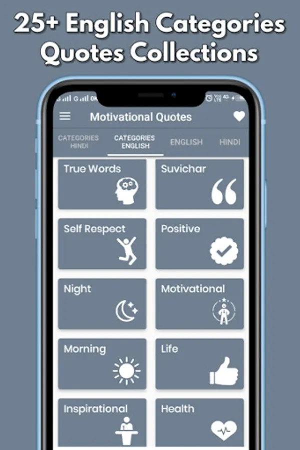 Motivational Quotes in Hindi App: All these quotes will help you change your life. It is the perfect place for Motivational quotes in Hindi and English. This app has 50+ different categories in Hindi and English.