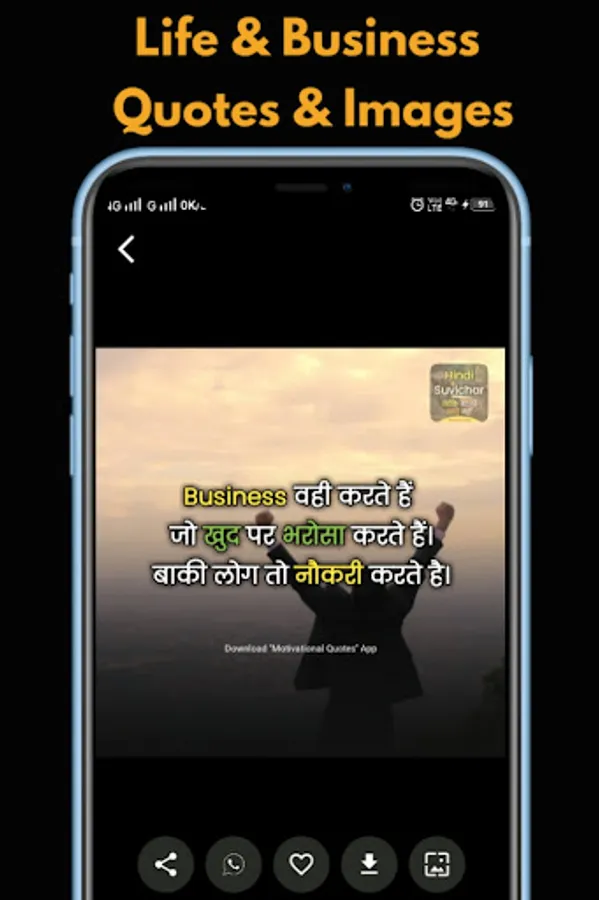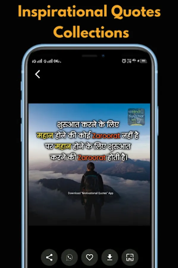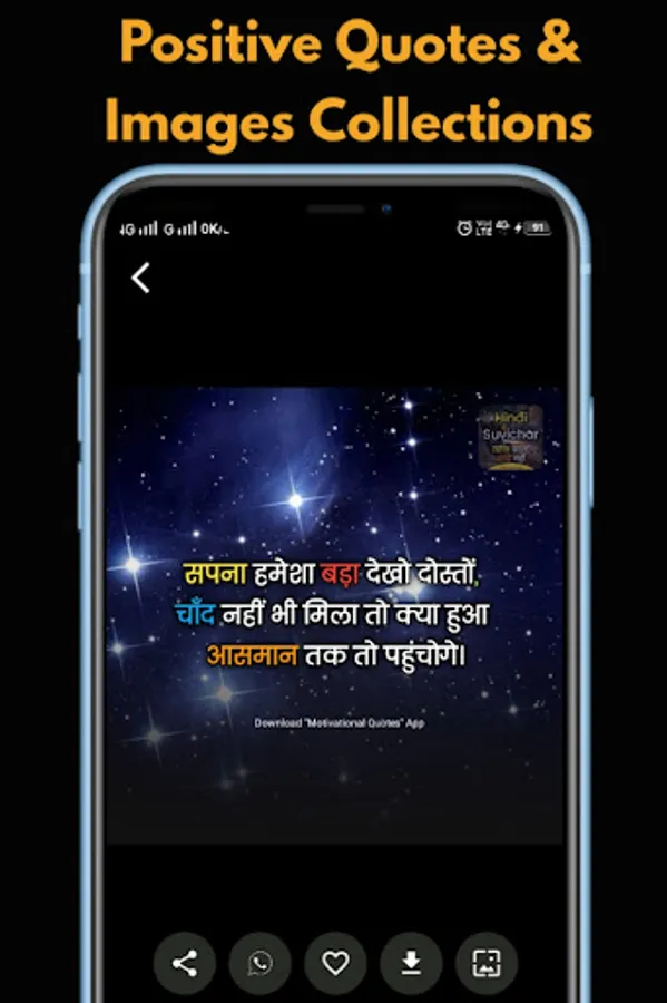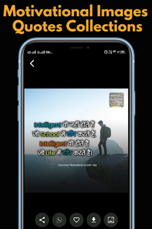 Share this Motivation App in Hindi with Motivational Quotes Image in Hindi to your friends and family in WhatsApp Facebook Instagram Hike and other social media platforms and share easy true thoughts and positive quotes .