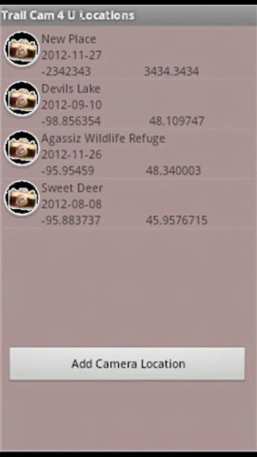 Trail Cam 4 U makes management of your trail cameras and outdoor events that happen at your trail camera location easy and fun. Track current and historical events by location. In addition to using GPS coordinates, you can even take a picture of the trail camera location and attach that to the trail camera details.