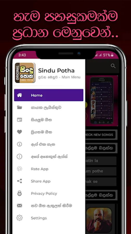 Sindu Potha was create by us who wish to enjoy Sri Lankan songs. This app consists of the collection of the most popular songs with 2022 & 2023 new songs. With attractive old songs. Including thousand of songs. This app is very useful while you are going a tripe or if you are in an occasion.