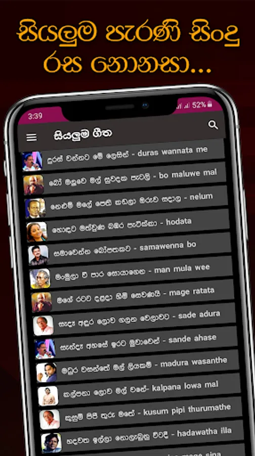 • Including all of most popular Sinhala songs in Sri Lanka.