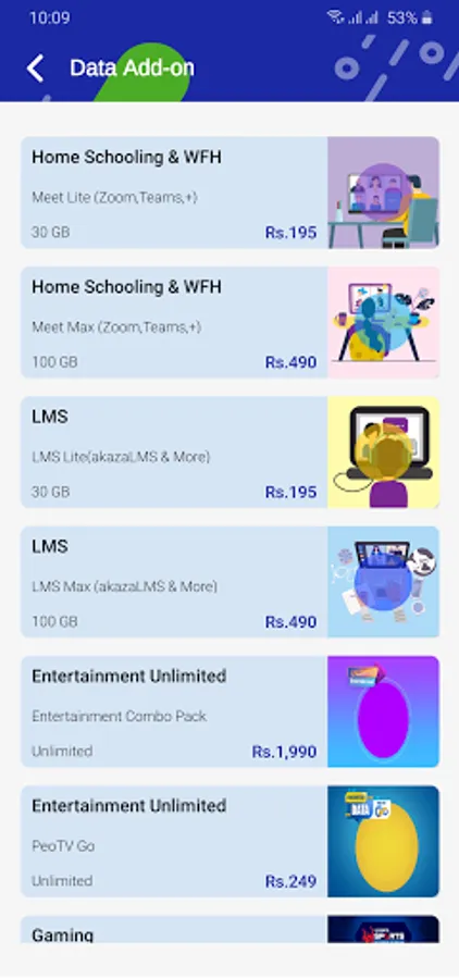 Detail descriptions on the available services via MySLT selfcare app are as follows,