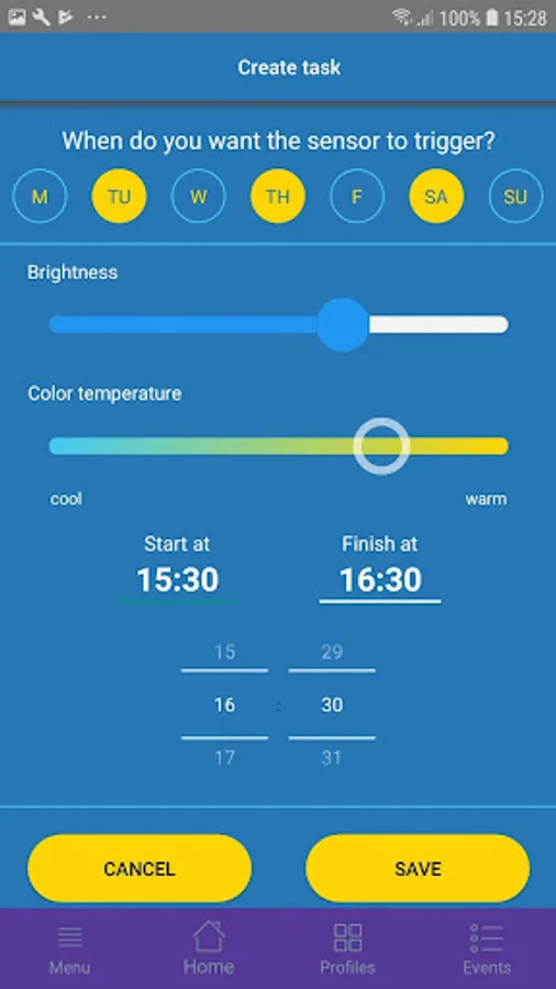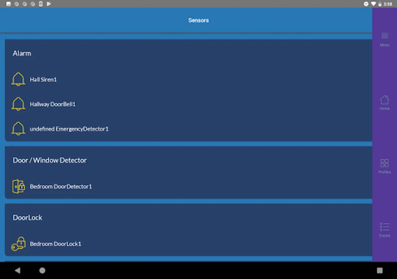- Configurables Home Profiles and Actions to handle events generated by the sensors