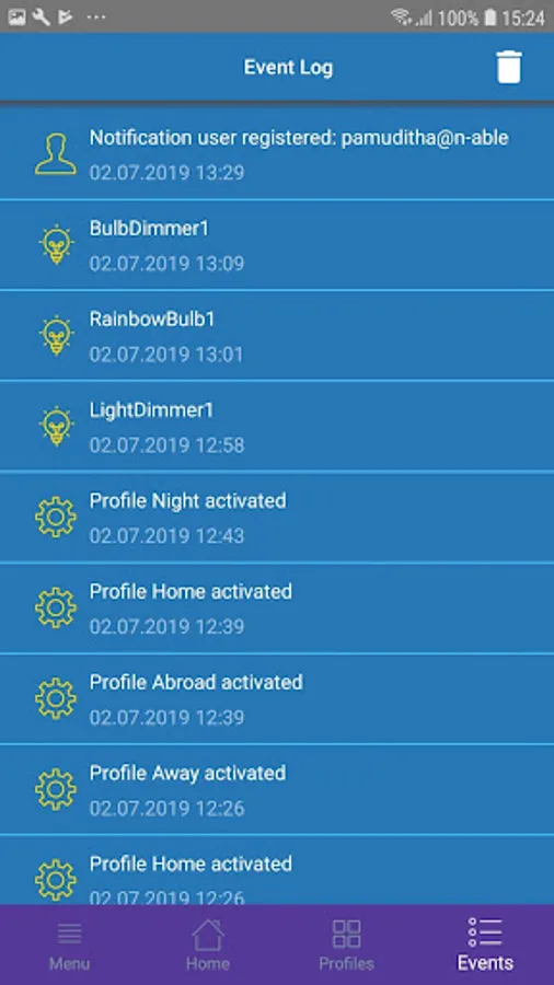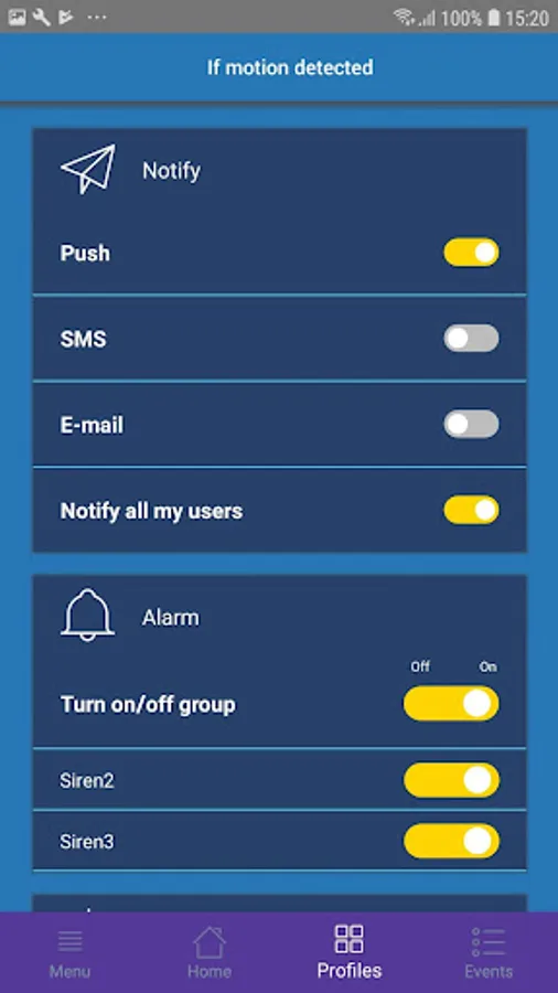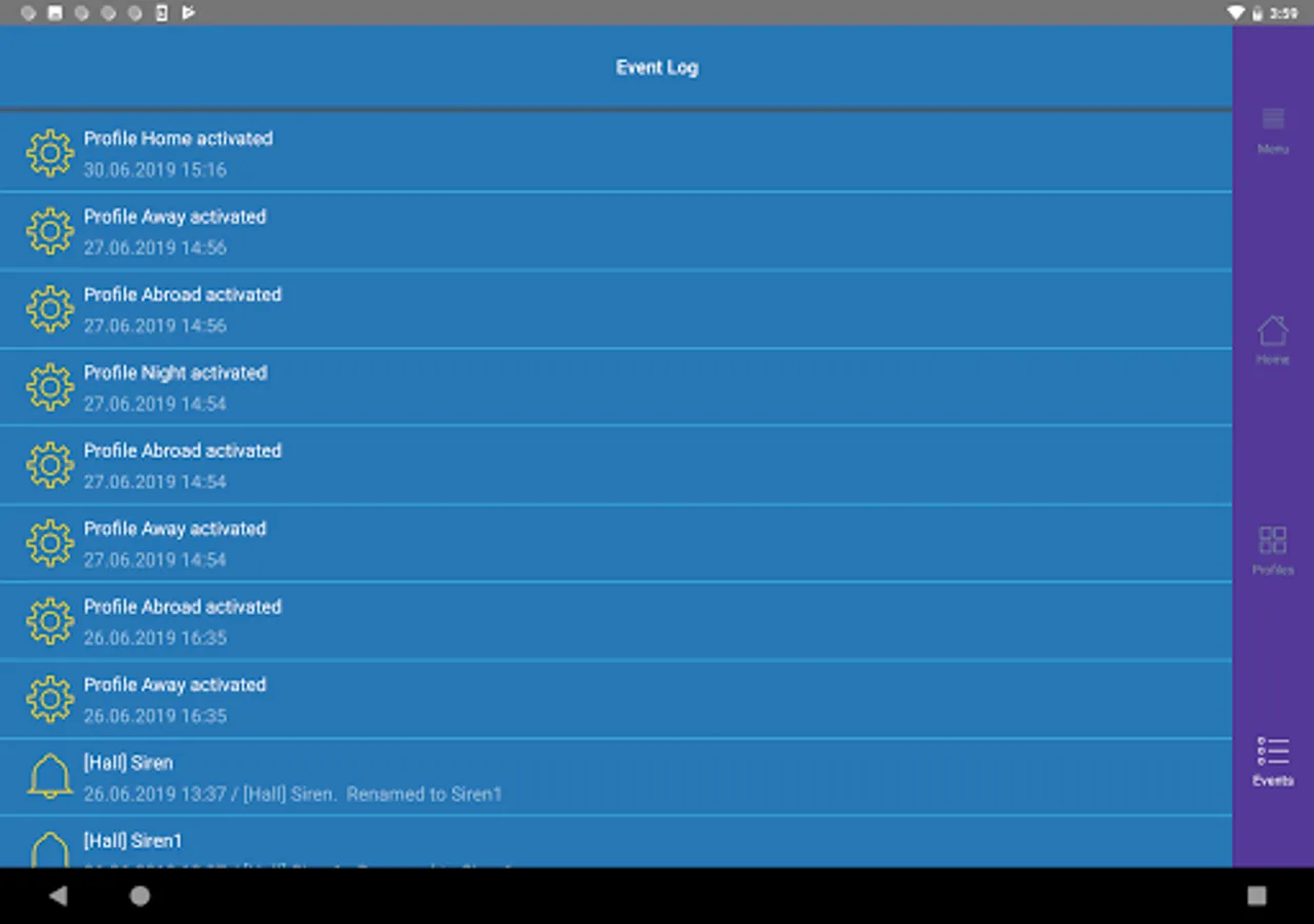 The application maintains flexible Home Profiles allowing to automatically react on any events