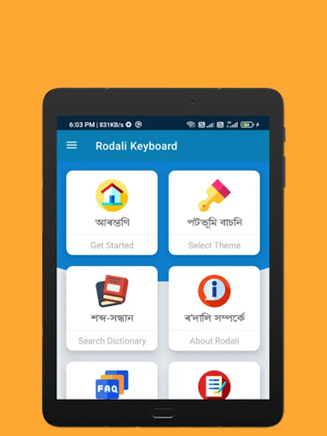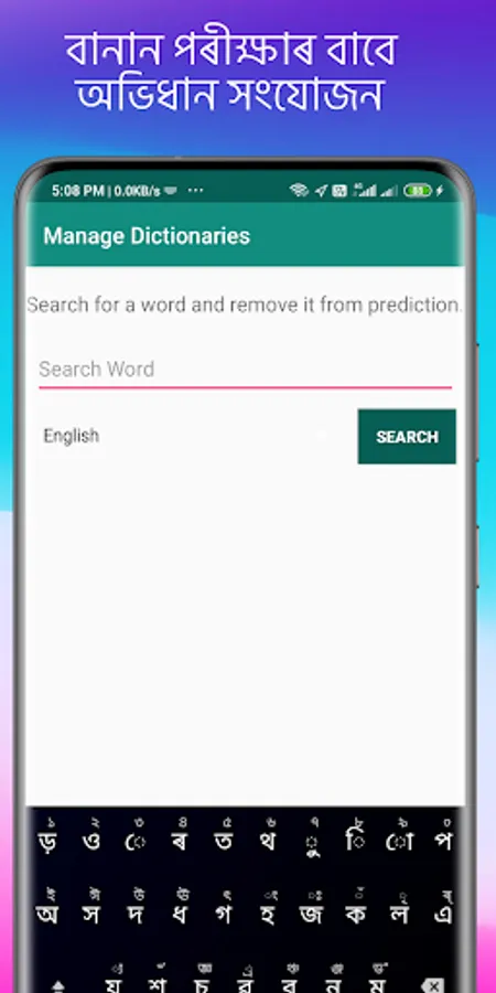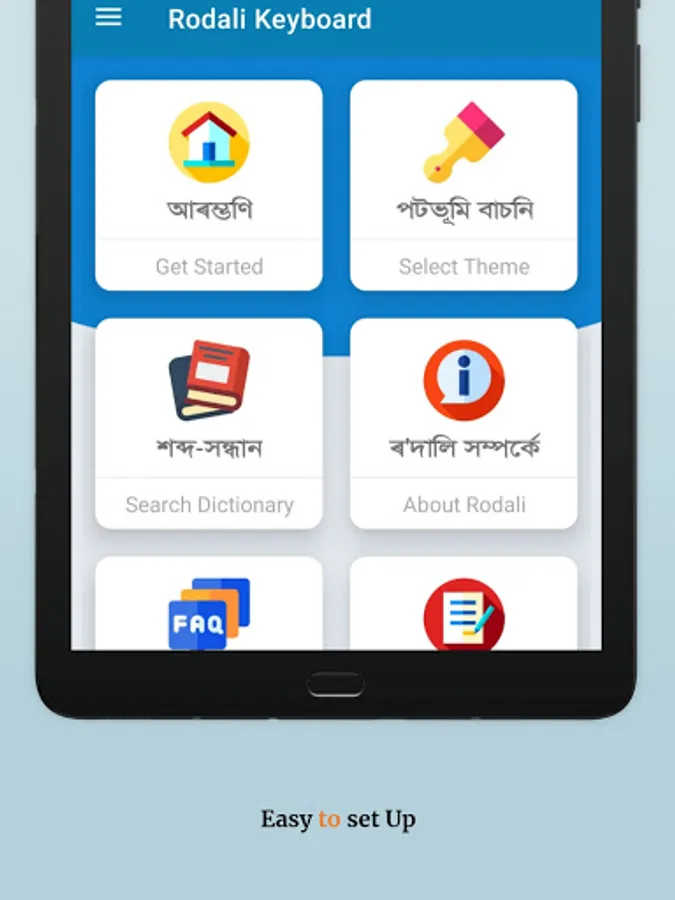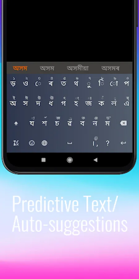 Barna Keyboard is a simplified yet complete solution for easy and smart typing in Assamese(অসমীয়া), English and Bodo languages on Android devices. With its simplified and fluid keyboard design, it gives its users the ability to easily swith between the active languages and type in any native android applications like text-messaging, e-mail and others. It provides automatic word suggestion/prediction to choose from which eases the typing effort and composing time of any text. User has control to enable any of the three supported languages, i.e. Assamese, English and Bodo or any combination among them.