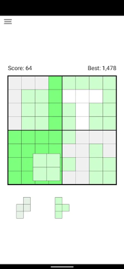 "8 blocks" is an 8x8 grid puzzle game where the goal is to get a high score by clearing rows, columns, and quadrants (4x4) using up to 3 pieces at a time. Clearing more pieces in a single move results in higher score multiples. Rotating pieces unlocks a new dimension of strategy for clearing blocks!