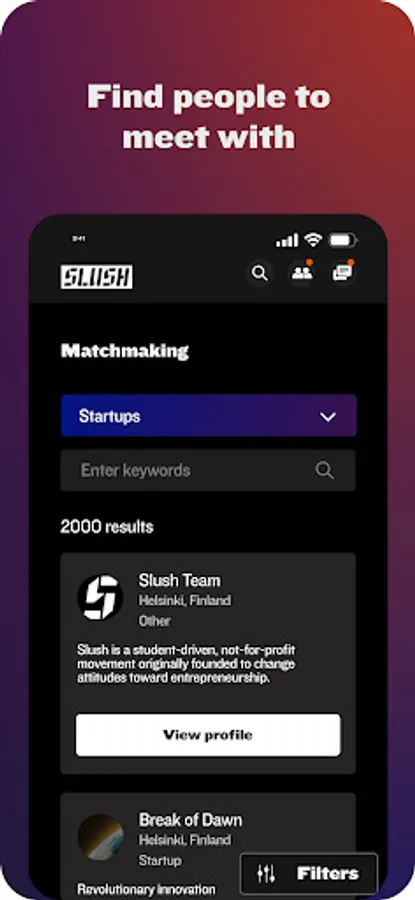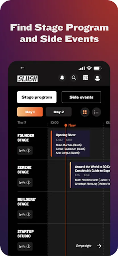 The Slush 2022 app is your gateway into chilly Helsinki in November and your no. 1 navigator when it comes to hacking Slush 2022. Through this app, you can browse our event program, create your own schedule for Slush Week, see the when and where of your accepted Matchmaking Meetings, and register for our 200+ Slush Side Events across the city.