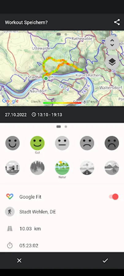 Stay in shape and track your outdoor activities with this app. Get information on average speed, calories burned, steps (pedometer), heart rate and much more information while running, cycling, hiking and other sports and fitness activities.