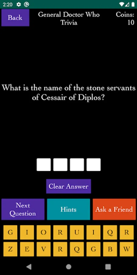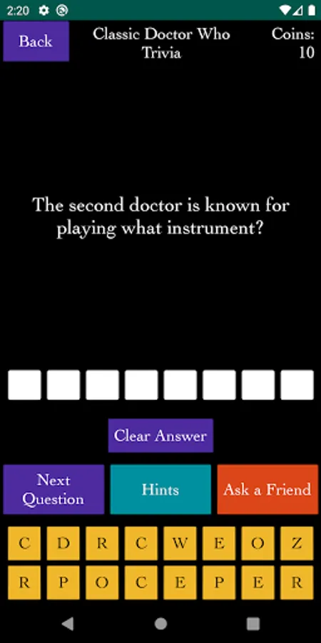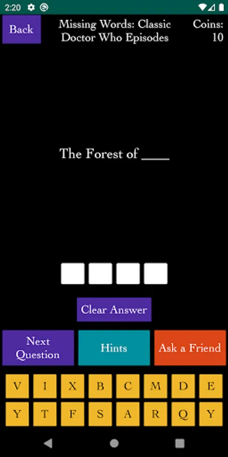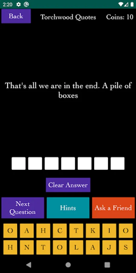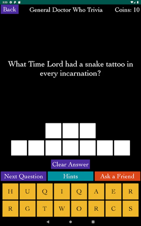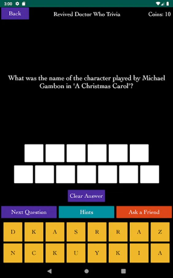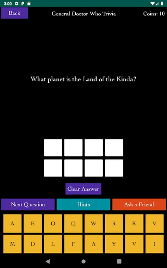 Each question you answer correctly will earn you coins which you can use to buy hints.