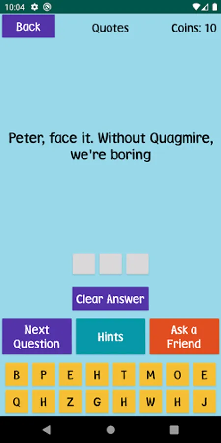 Each question you answer correctly will earn you coins which you can use to buy hints.