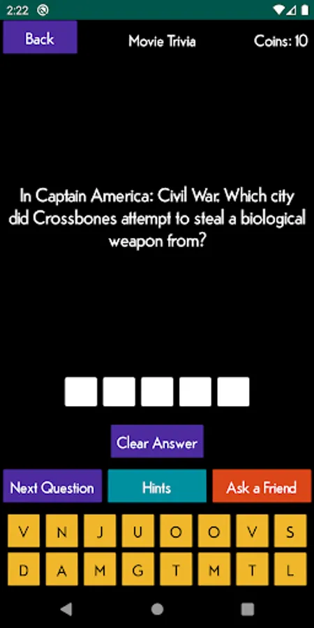 Each question you answer correctly will earn you coins which you can use to buy hints.