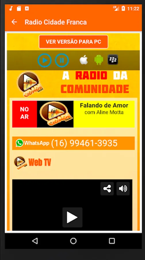 Community Radio. A broadcaster linked to the Associação Comunitária Cidade in the Vila Santos Dumont neighborhood