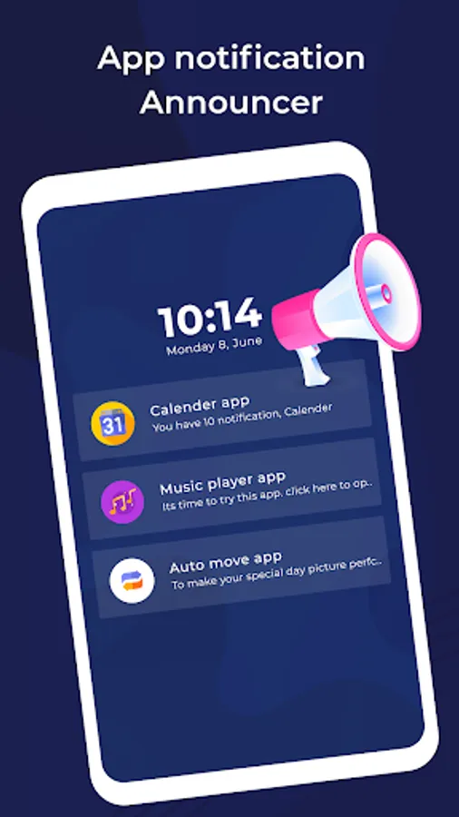 Voice Announce is a simple app that will help you to continue doing your work with having to get disturb of checking the notifications, caller details or text message details.