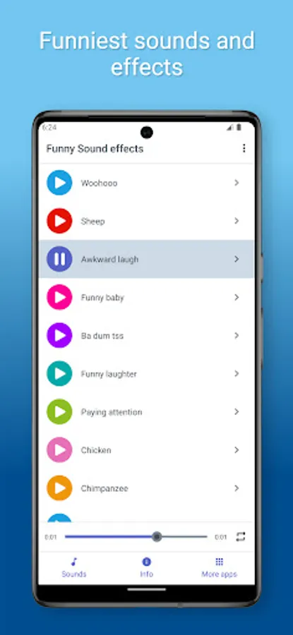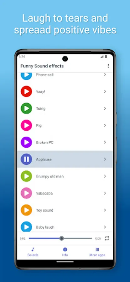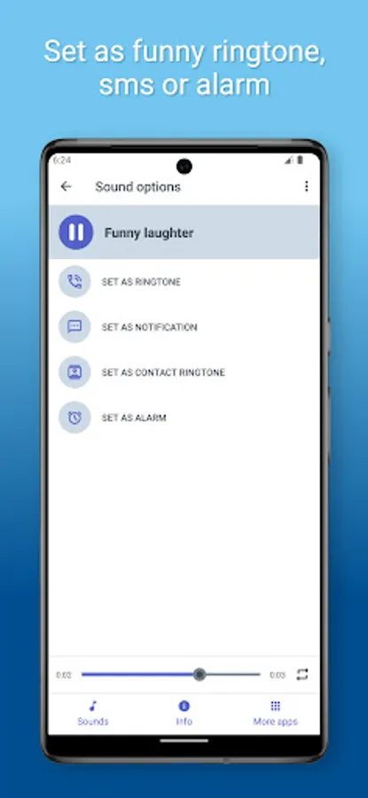 The best and funniest sounds available! Funny noises and jingles for you to make funny jokes, smile and laugh with your friends! And if you want to have different and unique ringtone you can set some funny sound as ringtone with our app for free! Change your old boring ringtone with some new and funny sounds! All you have to do is choose sound and set it as ringtone, contact ringtone, sms ringtone and alarm alert. Sounds in this app are interesting and they will make you and your friends laugh. In this soundboard app you can find various sounds such as dog, cat, chicken sounds, hilarious sound effects and cute sounds like baby singing and more! Get this collection of crazy sounds on your phone for free! These hilarious sounds will make you and your friends laugh wherever you are.