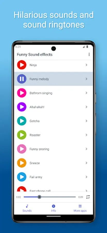 A good laughter is always welcome and sometimes it’s a good laugh that we need to make our days better. So, download Funny sounds for free and get funniest ringtones and sound effects for your phone! Make funny situations and make everyone laugh!