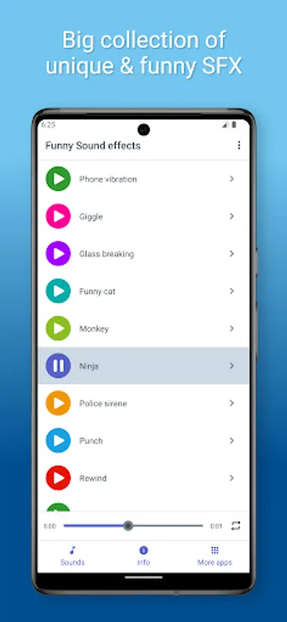Funny sounds is free ringtone application with best and funniest sounds for every day. These sounds effects will bring smile on your face. If you are bored with your old ringtone, you can use some sound from this free app! Or if you’re looking for some fun time, just play hilarious sounds from our free and have a laugh.