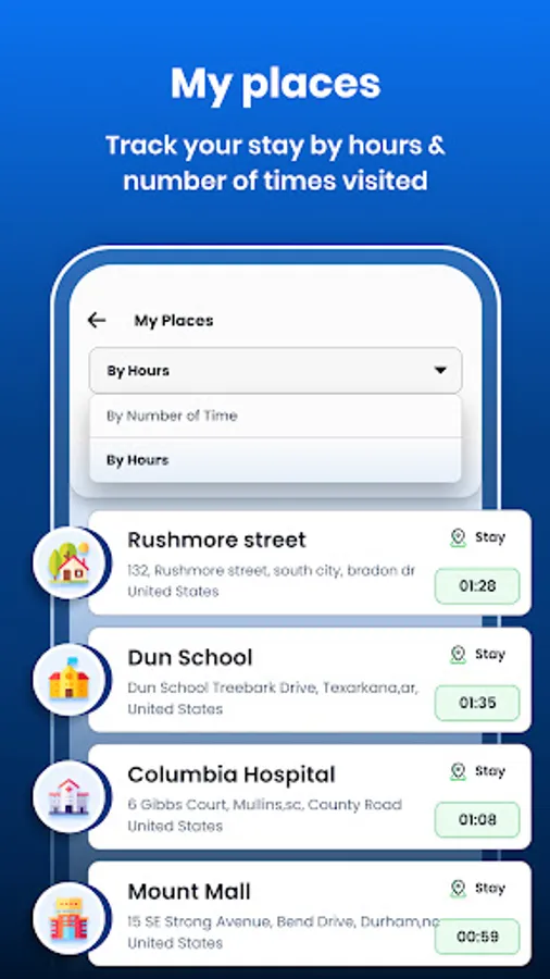 4) My Places: You can get detail of a particular location by times & by hours.