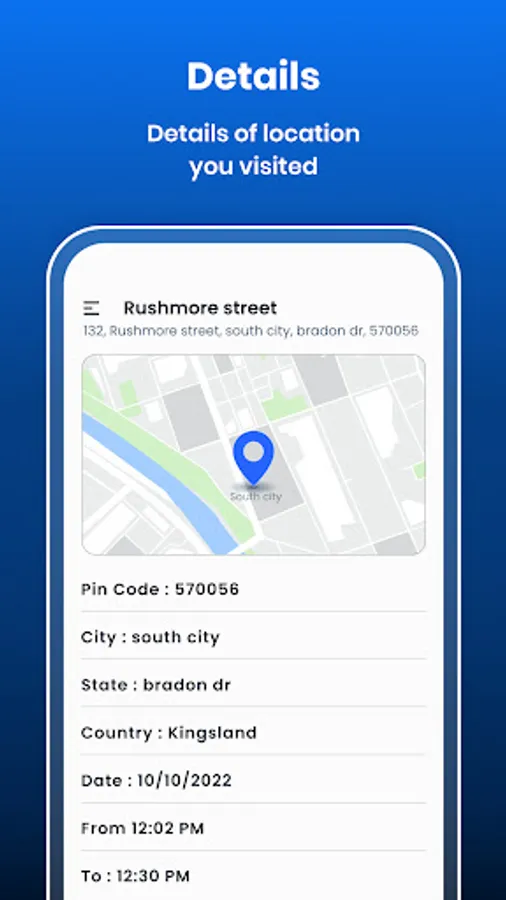 - Track your all location details with timings.