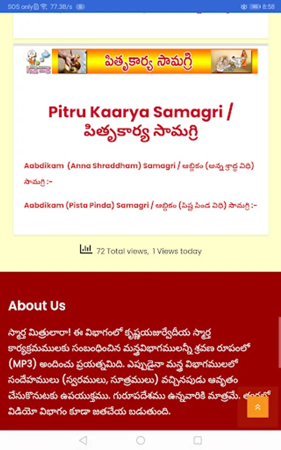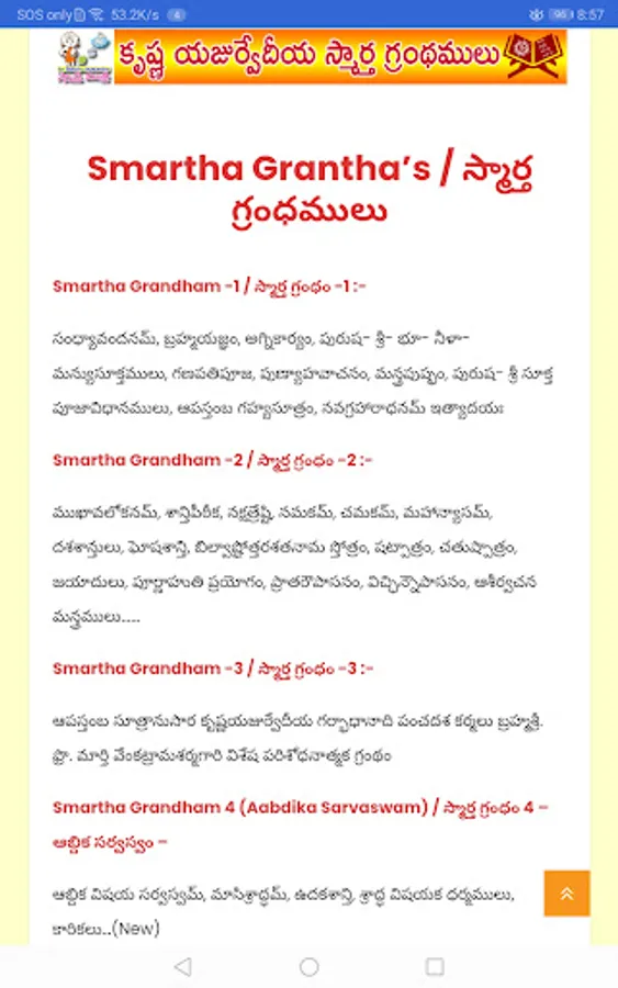 Included Smartha E_Books in Telugu for Smartha Students. (Aapastamba Panchadasa Samskara, Mahanyasa, Rudram, Shatpatra, Chatushpatra, Jayadi Homa, Pancha Suktha, Saptha Paka Yagna, Devatha Kalyana Vidhi, Aabdika Prayoga etc...............